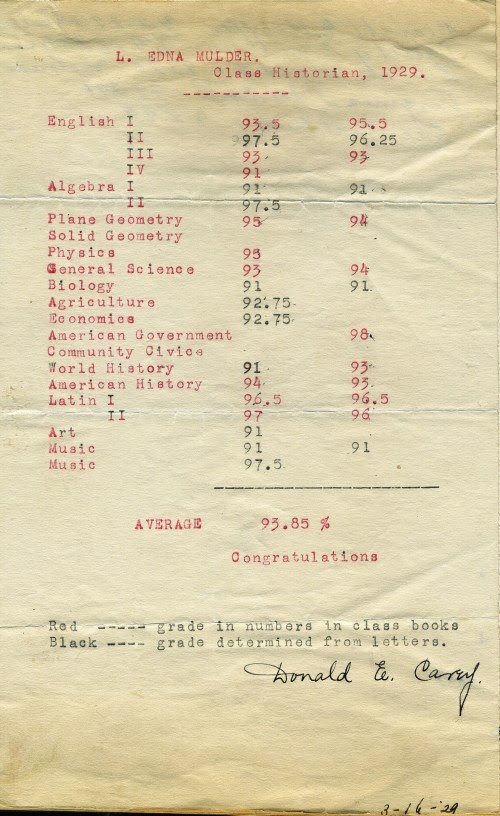 Edna Mulder?s high school transcript